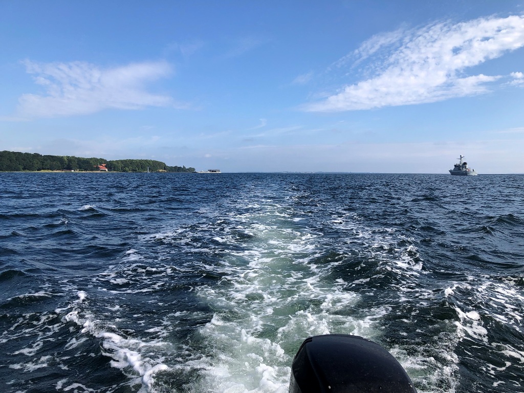 Tidligt op og så afsted. De havde lovet bølger og vindstød op til 14 m/s, som skulle ramme omkring frokosttid. Vi tog derfor ikke nogen chancer og strøg afsted mod Lynæs. Turen blev lidt kortere end den plejer, da der ikke var skydning ud for Jægerspris. Så for en gangs skyld kunne jeg sejle gennem fareområdet. Efter tankning var det hurtigt videre sydpå ned gennem Roskilde Fjord. Desværre tog vinden til på vej sydover og ved Havelse var der fuld styrke. Ikke mindre en 1 m bølger direkte på var en stærk kost for fruen og naturligvis båden, men ingen grund til panik. Ørnen er jo en lille stærk fætter og jeg trak ud i siden af løbet ned mod Frederikssund for at komme lidt i læ. Det gik og vi kunne holde Frokost bag dæmningen ved Frerikssund og også puste lidt ud efter den hårde sejlads.
