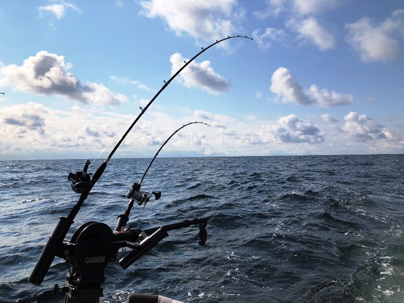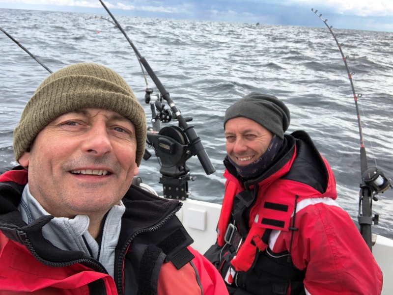 Allerede ude for havnen ville bølgerne det anderledes. De var simpelthen langt større end de 0,5 m, som diverse vejrtjenester havde spået. Nærmere 1-1,5 m og farten måtte derfor afstemmes efter det og vi ville derfor nøjes med at afsejle bananen 4 SM ude. Det kunne jo være, at vi alligevel kunne få en laks på krogen. Det skulle jo lægge sig i løbet af et par timer, hvilket det også gjorde. Men ingen fisk ville bide på i dag og vi måtte tage hjem uden skæl i kassen. Men som altid en god tur.