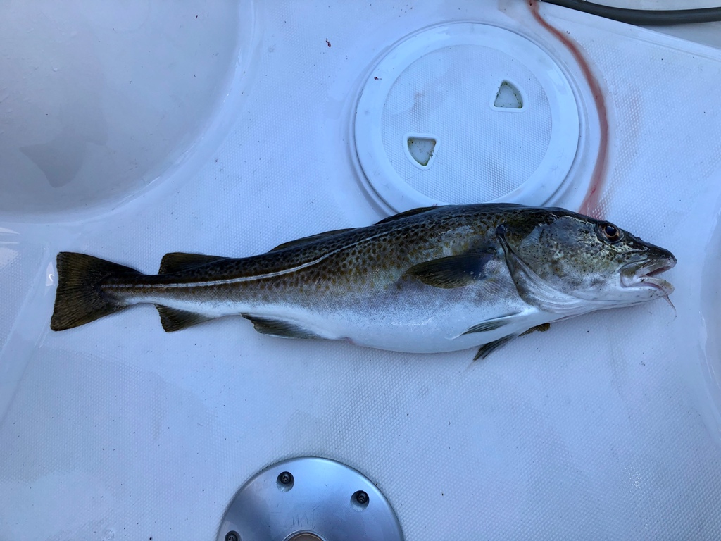 Jeg gik i fra Skovshoved og var i vandet kl. 07.00 - afsted det gik og kort tid efter var de 6 stænger jeg havde med sat op. Nu var det bare at vente. Glæden varede dog kort, for der var simpelthen meget grøde i vandet, så der skulle arbejdes hele tiden. Jeg lå mellem Vedbæk og Hven inden jeg vendte og HAPS, så var der en torsk på 2.1 kg og 60 cm på dækket.