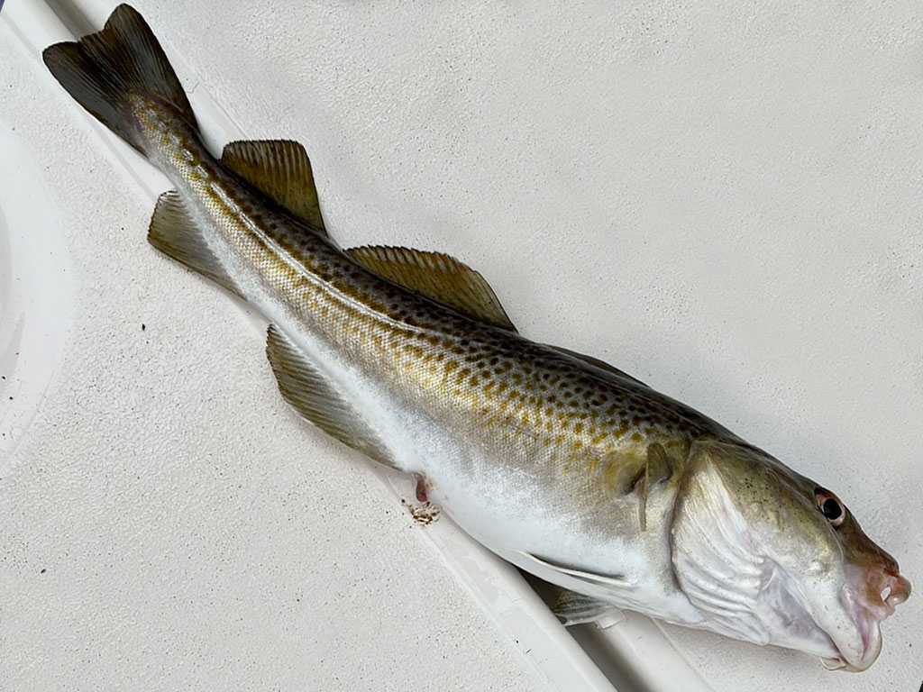 Da solen stod op lørdag morgen, var planen at sejle kystnært nordpå, og i første omgang se om ikke en havørred kunne finde vej forbi mine trolling blink. Vejret var for første gang i mange uger helt fantastisk med sol og til dels også blå himmel og rolige bølger. Det skulle dog hurtigt ændre sig. Allerede ved 10-tiden skiftede vejret karakter til det efterhånden velkendte: Overskyet med masser af regn og blæst og de medfølgende voksende bølger. Jeg fangede dog en torsk på 47 cm og 1,85 kg, som jeg normalt ville have sat ud igen, men den var så medtaget af at blive trukket med gjorde, at jeg valgte at den skulle i kølekassen. Havørreder så jeg intet til og der var efterhånden så meget søgræs, at det ikke var så fornøjeligt længere at trolle. Da jeg var nået til Rungsted vendte jeg skuden og sejlede modsat, men der var desværre ikke mere at hente.