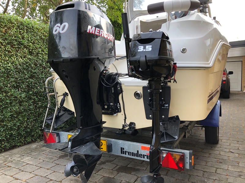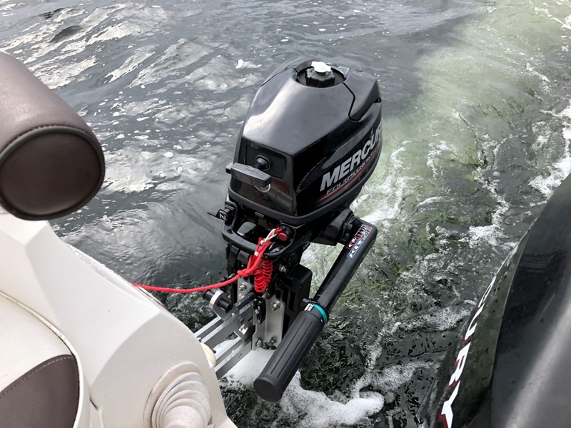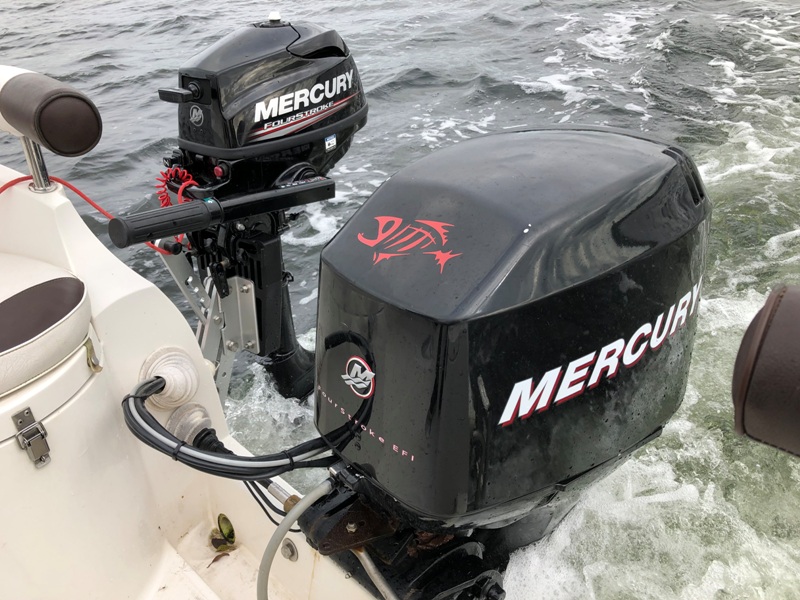 Efter nu 2 motorstop (godt nok med 2 forskellige hovedmotorer) med efterfølgende bugsering hjem, har tanken ligget utrolig nær om at have en lille ekstramotor i reserve som sikkerhed. Jeg besluttede derfor, at nu skulle det være. Valget faldt i første omgang på en 6 HK, men den jeg havde stillet mig i udsigt blev solgt lige for næsen af mig. Jeg spottede i stedet en Mecury F3,5 MLH, som var stort set ny (årg. 2018) og som kun havde kørt 3 timer og som jeg kunne få for halv pris af en spritny. Måske den var for lille, men det måtte en prøvetur be- eller afkræfte. Jeg kan jo altid bytte den ud igen!