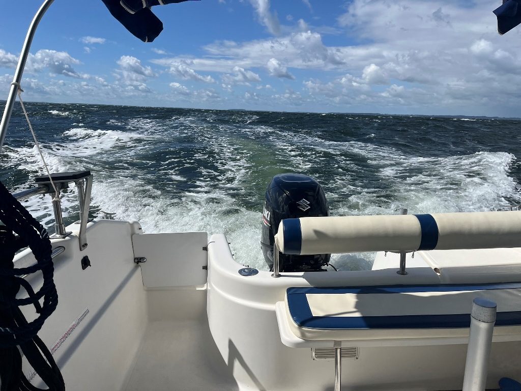 Et syn agterud under overfarten fra Kongsøre til Kulhuserenden - store bølger!