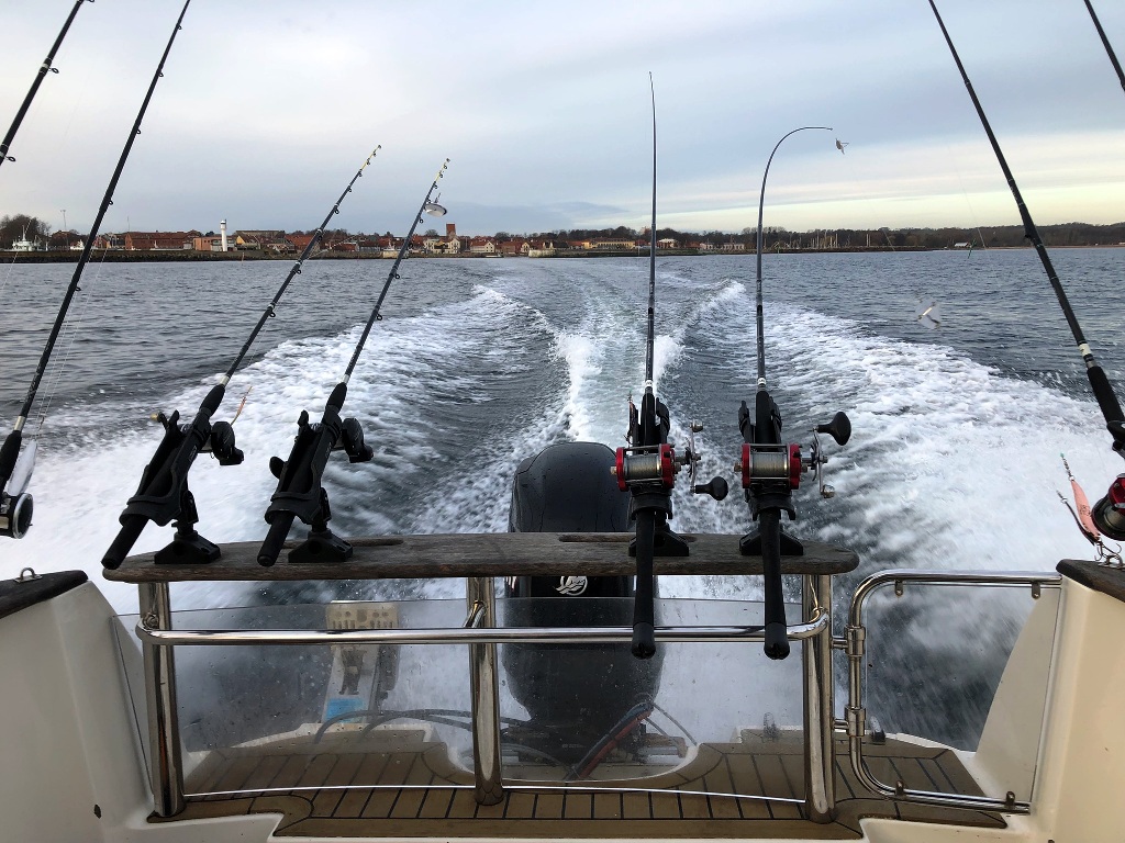 Vi havde en forrygende dag og var faktisk meget taknemmelige over, at vejret var med os. Men fisk var der ikke rigtig held med. Vi prøvede stort set alt hvad der var i værkstøjskassen af fiskegrej og fiskede i alle lag og i mange timer, men lige lidt hjalp det. Dog nappede en sild min Rhino med flasher i 90 fod direkte på krogen i den sidste halve time, men det tæller jo ikke rigtigt, vel?