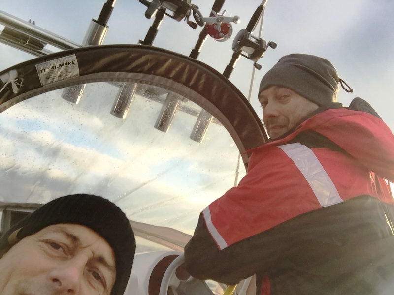 Tony var frisk på at deltage i dagens forsøg og en af mine arbejdskolleger var også frisk sammen med en af hans kammerater i hans båd. Så 2 både afsted og så var sikkerheden også i orden på den kant. Desværre var bølgerne alt for store til at sejle efter vores plan, nærmere 1-1,5 m var jo helt hen i vejret! Vi besluttede at sejle NØ mod 20 meteren i stedet og så følge den nordpå i nogle timer indtil bølgerne lagde sig.